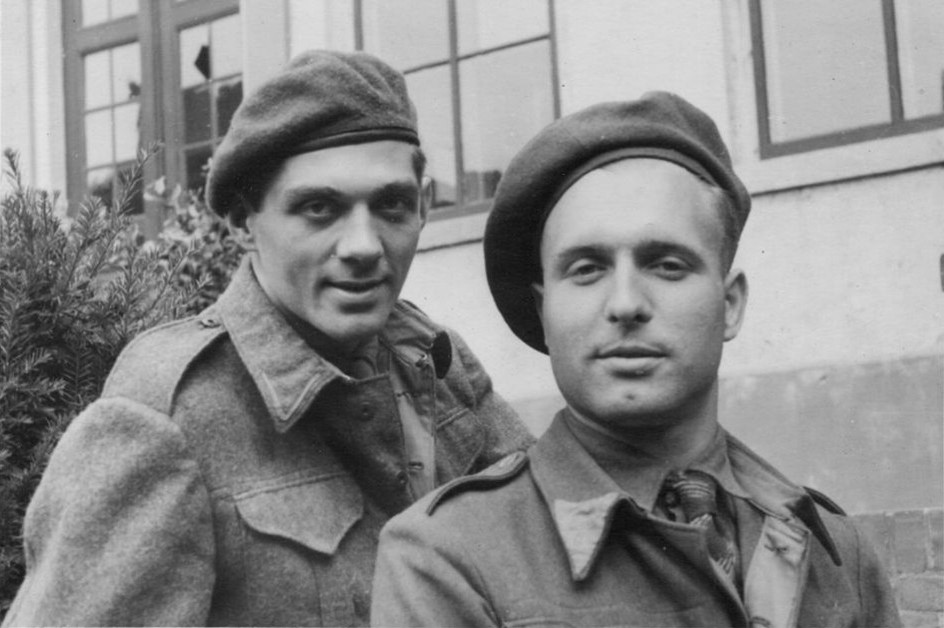 Hans Renshof (links) en Jan Snijders (rechts), juni 1945